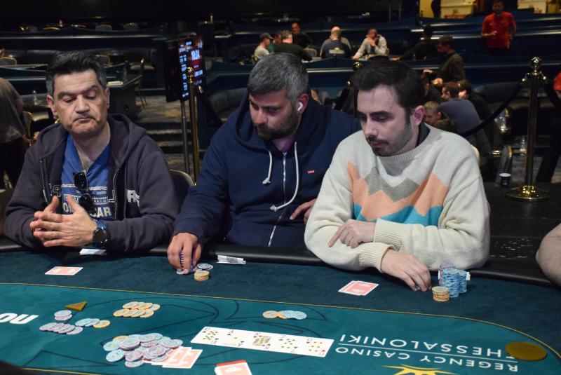 Level 13, blinds 4.000/8.000, ante 8.000 (119 entries + 60 re-entries / 47 players IN) Κάνοντας τις γύρες μας πέσαμε στο all-in (242k) του Βουλδή σε board . Ο Στρούλης που είχε τοποθετήσει 60k στο co σκεφτόταν αρκετή ώρα, ζητήθηκε time και 1-2 δευτερόλεπτα πριν εκπνεύσει ο χρόνος muckαρε τα φύλλα του. Έναν άσο έδειξε ο Βουλδής, με τον αντίπαλο του να λέει πως δεν είχε άσο. - Παλαιότερα