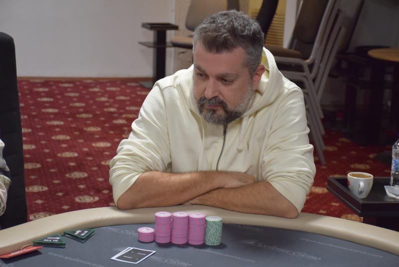 Διάλειμμα 20 λεπτών για τους 14 φιναλίστ, chip leader η Monika Nikolova, στη φωτο ο Χαράλαμπος Ζώγας από το Ηράκλειο Κρήτης.