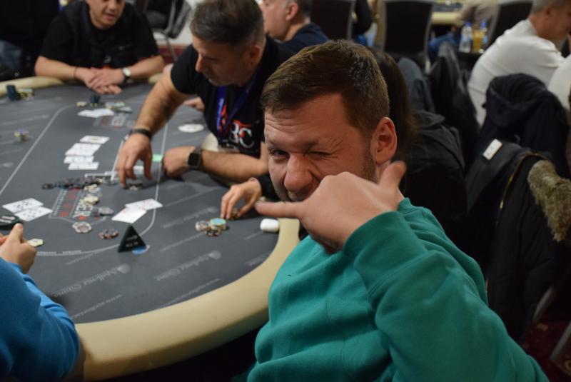 Level 10, blinds 1.000/2.000, ante 2.000 (108 entries + 28 re-entries / 79 players IN) Αρκετά final tables το τελευταίο διάστημα στα τοπικά poker clubs ο 'είλωτας' (φωτο) που ψάχνει ωστόσο το... big score, σε λίγο ξεκινάει και το €40 super satellite για το main event που θα 'χαρίσει' τουλάχιστον δέκα εισιτήρια συνολικής αξίας €3.500!