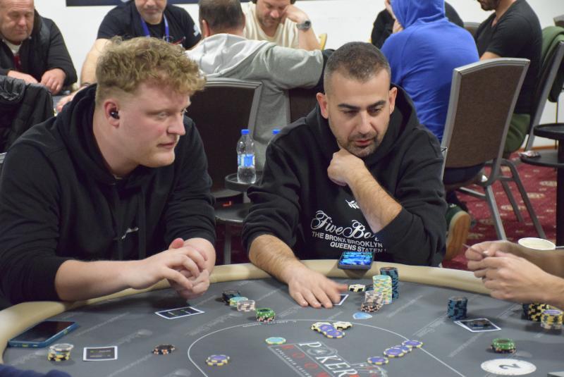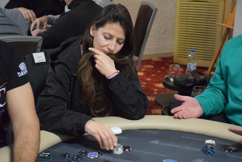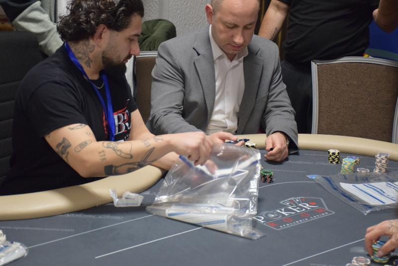 Level 6, blinds 400/800, ante 800 (106 entries + 10 re-entries / 95 players IN) Κι οι Δημητριάδης, Πουγαρίδης, 'Crown', Δημάδης, 'Voupet', Λάππας, και Krstevski συμμετέχουν επίσης στη Day 1b, οι δύο τελευταίοι σε διπλανές θέσεις.
