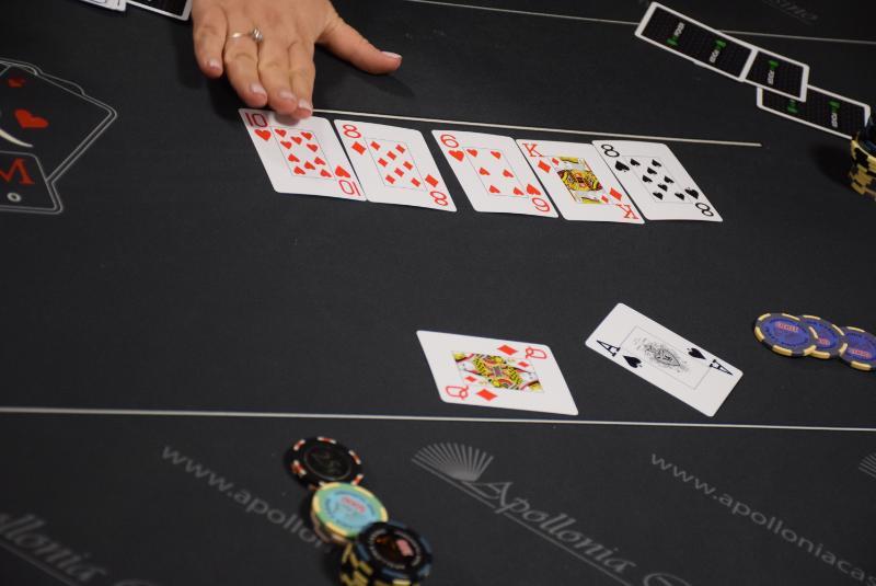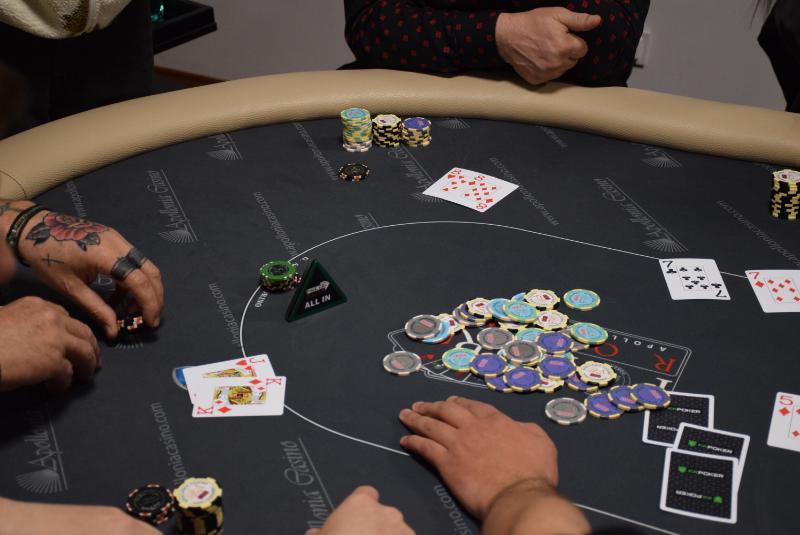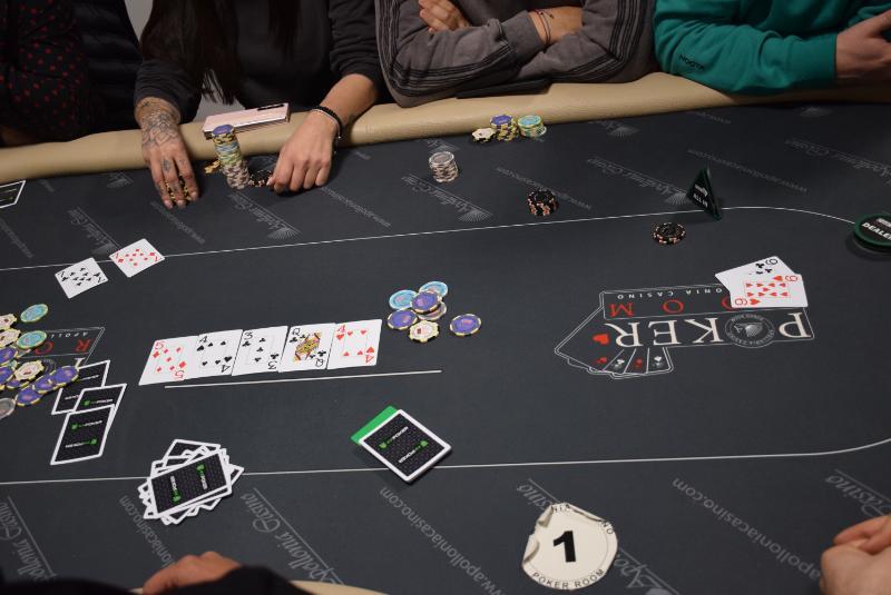 Level 13, blinds 2.000/4.000, ante 4.000 (108 entries + 38 re-entries / 51 players IN) Άρχισαν και οι... χοροί στο poker room με τον παίκτη της φωτογραφίας δίπλα στον Φούρναρη να κερδίζει τετραπλό all-in preflop με εννιάρια απέναντι σε Δρασκίδη (Κ-J), Πετράκη (7-7) κι ένα παίκτη ακόμη με οχτάρια!