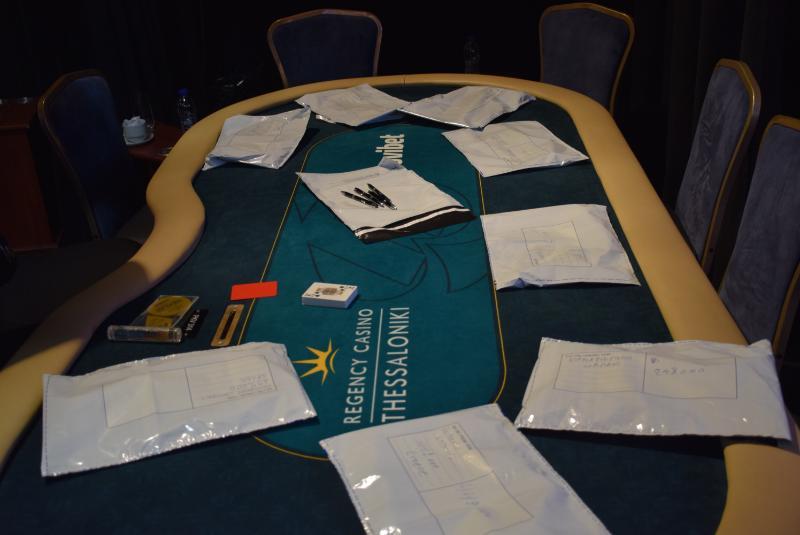 15. Level 10, blinds 2.000/4.000, ante 4.000 (119 entries + 54 re-entries / 79 players IN) Στο poker room βρίσκεται κι ένα team από Βουλγαρία που παίρνει πλάνα και συνεντεύξεις παικτών, στο διάλειμμα μίλησε μαζί τους και ο Φώτης Νταμάρης.
