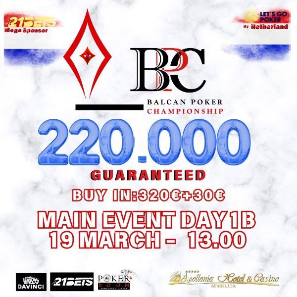 Σε flop μπήκαν οι μάρκες στο bubble, o Σολακούδης, ο Καλυμνός, στη φωτο το board. Τα stacks της Day 1a 1: Δημήτρης Χατζηγεωργίου: 995.000 2: Θ.Τ.: 902.000 3: Μανώλης Χαλκιώτης: 858.000 4: Dimitar Ivanov: 532.000 5: Δ.Κ.: 497.000 6: Peter Paul Barten: 405.000 7: Γρηγόρης Πουγαρίδης: 404.000 8: Γιάννης Λαζαρίδης: 382.000 9: Bαγγέλης Σολακούδης: 375.000 10: Κώστας Δημάδης: 298.000 11: B.Σ.: 284.000 12: Aχιλλέας Θεοδοσίου: 234.000 13: Κώστας Δασκάλου: 229.000 14: Nikola Krstevski: 223.000 15: 'ROX': 182.000 16: Clemens Chrisyian: 179.000 17: Jonathan Harold Rinsma: 178.000 18: Mario Kostovski: 145.000 19: Georgi Baldzhiev: 78.000