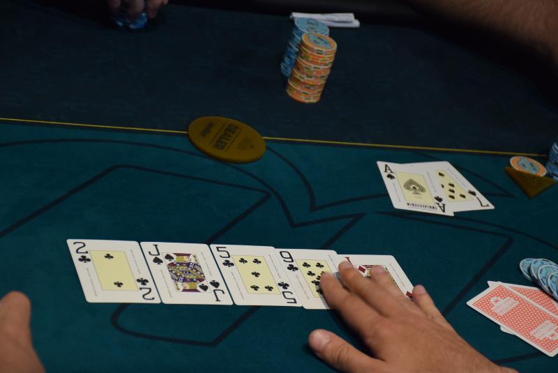 Level 15, blinds 6.000/12.000, ante 12.000 (306 entries + 113 re-entries / 82 players IN) Kάποιοι είναι προληπτικοί, κάποιοι όχι, με τον Αλέξη Μεσσάλα να φοράει φούτερ των μαυρόγατων της Σάντερλαντ. -