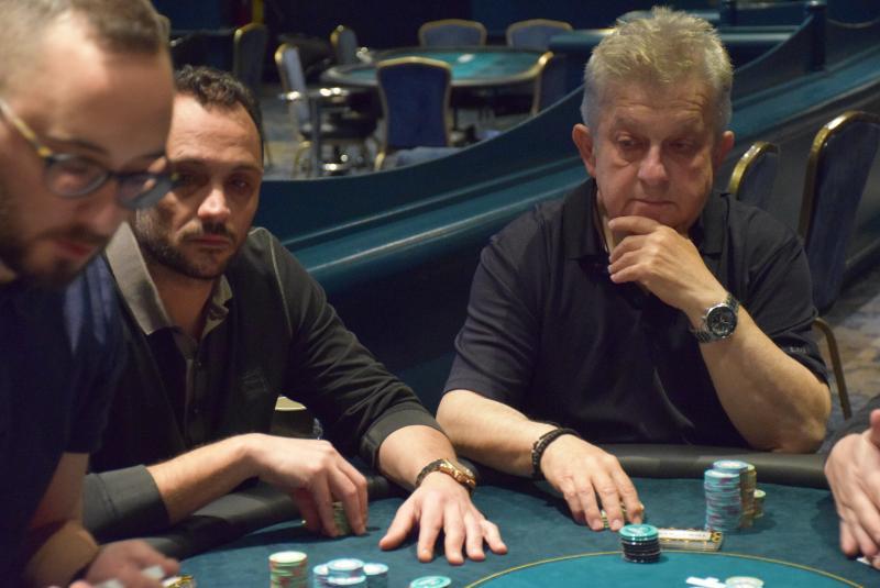 Level 14, blinds 15.000/25.000, ante 25.000 (121 entries + 52 re-entries / 45 players IN) Υπάρχει δρόμος ακόμη μέχρι να λήξει η μέρα στους 20 φιναλίστ, συνεχίζουν σε έξι τραπέζια μεταξύ άλλων οι Βλάχος, Πεχλιβάνης, Τσιόλας, Αμπελικιώτης, Σιαντίκος, Μ.Ζαχαράκης, Παλιογιάννης, Ζαχαρίου, Τσακίρης, 'MiaDio', Σούρλας, Τασουλης, Μυλωνάς, 'm3lancholy', Ζενεμπίσης, 'F4n4t1k', Μελλίδης, Αθανασίου, Παπαβραμίδης, Θάνος, Πάσσος, 'souramaliki' και Πετυχάκης. Στη φωτο Ζενεμπίσης και Μ.Ζαχαράκης που κάθονται σε πλαινές θέσεις. -