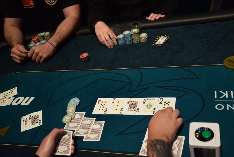 Level 18, blinds 30.000/60.000, ante 60.000 (121 entries + 52 re-entries / 20 players IN) Σε rainbow flop 10-9-8 μπήκαν οι μάρκες με τον Βάιο Πεχλιβάνη να κρατάει K-10 και τον Nikolay Savov ντάμες, τριάρι στο turn, ρήγας στο river και οι παίκτες ξεκίνησαν γρήγορα-γρήγορα το chip count πριν κατευθυνθούν για... πατσά. -