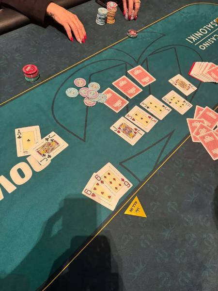 21. Level 3, blinds 1.000/2.000, ante 2.000 (93 entries + 6 re-entries / 93 players IN) Πολυνίκης τη φετινή σεζόν στα τοπικά poker clubs o 'Myro' που ξεκίνησε σχετικά πρόσφατα την ποκερική του διαδρομή και κάθισε δίπλα στον Nίκο Βαλτατζή.