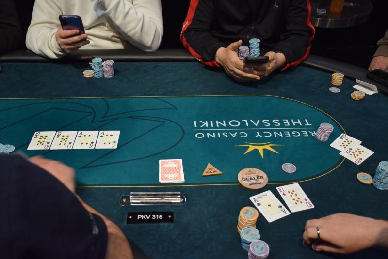 Διάλειμμα 15 λεπτών για τους πέντε φιναλίστ του PKO, στο πέμπτο level το main event που έπιασε 100 συμμετοχές. -
