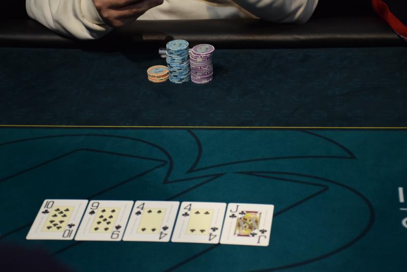 Level 18, blinds 30.000/60.000, ante 60.000 Straight flush για τον Αλέξανδρο Τασουλη με το καλημέρα που ανακοίνωσε το open-shove (utg) για 680k με και πήρε call από τον Βάιο στο bb με Q-3o. -