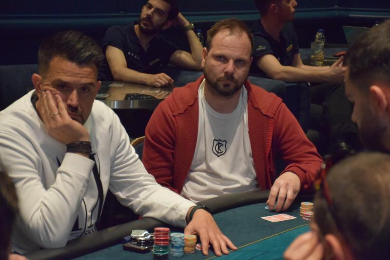 Level 14, blinds 15.000/25.000, ante 25.000 (121 entries + 52 re-entries / 45 players IN) Υπάρχει δρόμος ακόμη μέχρι να λήξει η μέρα στους 20 φιναλίστ, συνεχίζουν σε έξι τραπέζια μεταξύ άλλων οι Βλάχος, Πεχλιβάνης, Τσιόλας, Αμπελικιώτης, Σιαντίκος, Μ.Ζαχαράκης, Παλιογιάννης, Ζαχαρίου, Τσακίρης, 'MiaDio', Σούρλας, Τασουλης, Μυλωνάς, 'm3lancholy', Ζενεμπίσης, 'F4n4t1k', Μελλίδης, Αθανασίου, Παπαβραμίδης, Θάνος, Πάσσος, 'souramaliki' και Πετυχάκης. Στη φωτο Ζενεμπίσης και Μ.Ζαχαράκης που κάθονται σε πλαινές θέσεις. -