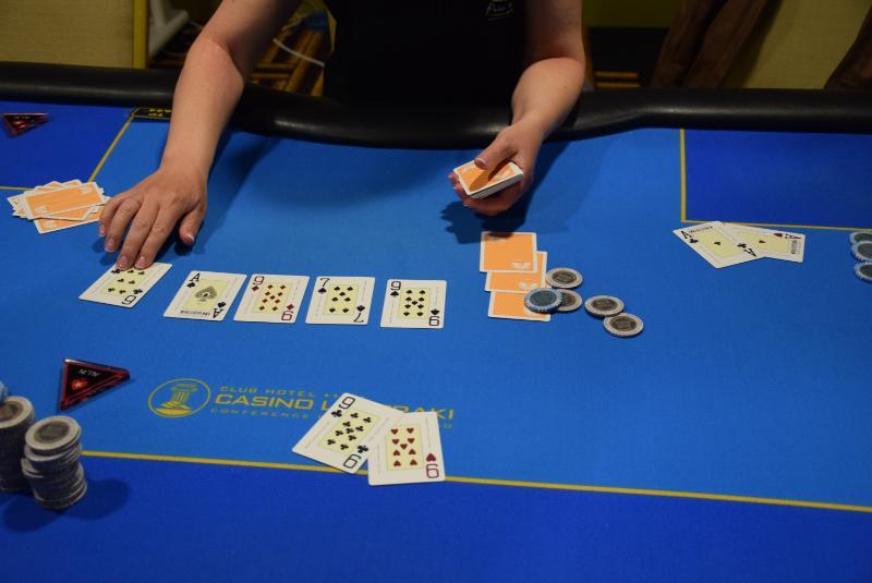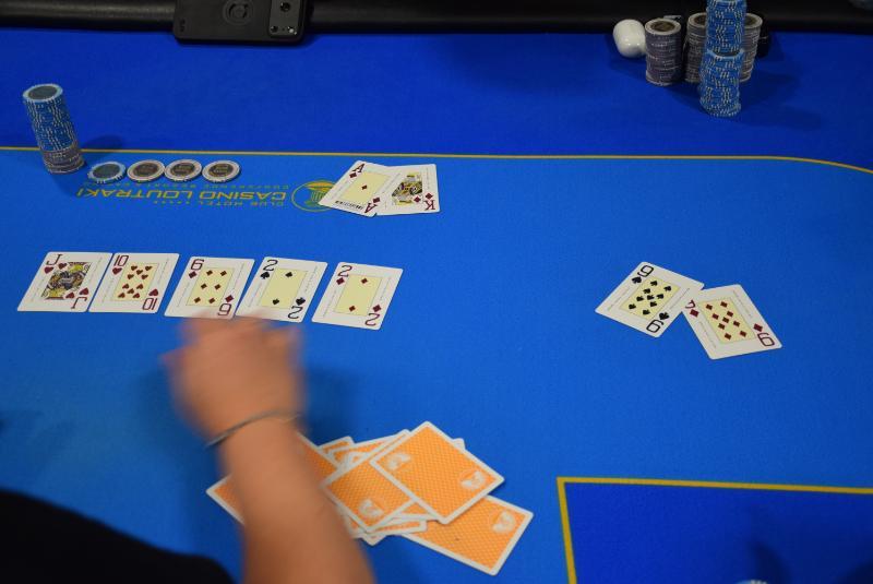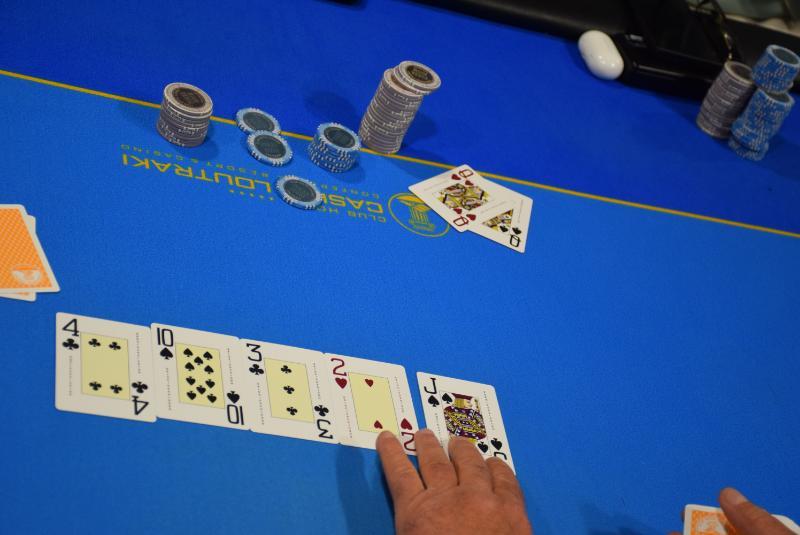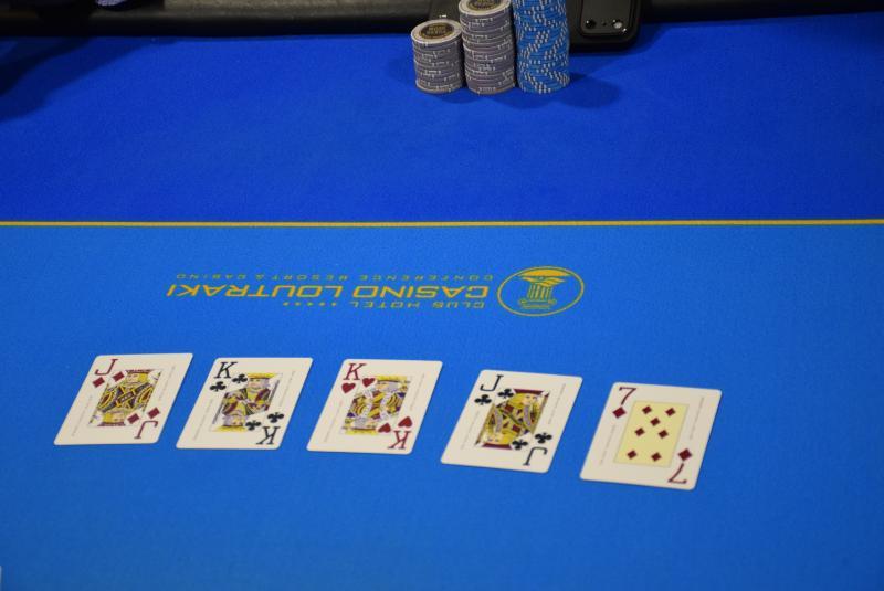 Level 16, blinds 5.000/10.000, ante 10.000 (412 entries / 65 players IN) Μini raise o Κυριόπουλος από utg, 3-bet στις 63.000 ο Κάτσης από sb, 4-bet στις 125.000 ο Σιαντίκος στο bb και fold o initial. Five bet shove o Κάτσης με Α-Κ, call ο Σιαντίκος που γύρισε τα φύλλα του και στην αρχή φάνηκε μόνο το ένα. Πολύ κακό για το τίποτα τελικά καθώς είχε Α-Κ κι αυτός, η dealer... δεν είχε κέφια και οι παίκτες μοιράστηκαν το pot.