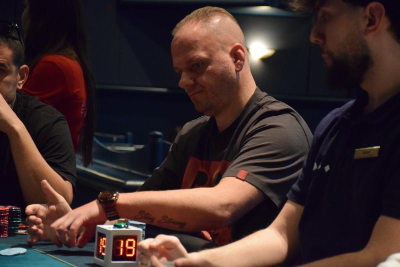 Level 11, blinds 2.500/5.000, ante 5.000 (124 + 54 re-entries / 88 players IN) Αφού ξεμπερδέψαμε με τους... μυστήριους ρίχνουμε την προσοχή μας πλέον στο €250 Progressive Knockout event. Tα πρώτα 11 levels συμπληρώνονται σε λίγο και θα έχουμε τα τελικά νούμερα. Ανάμεσα τους και το 'poker face της χρονιάς' για την χώρα μας το 2025 (Δημήτρης Γκατζάς) με την τεράστια επιτυχία του τον περασμένο Δεκέμβριο στην Πράγα.