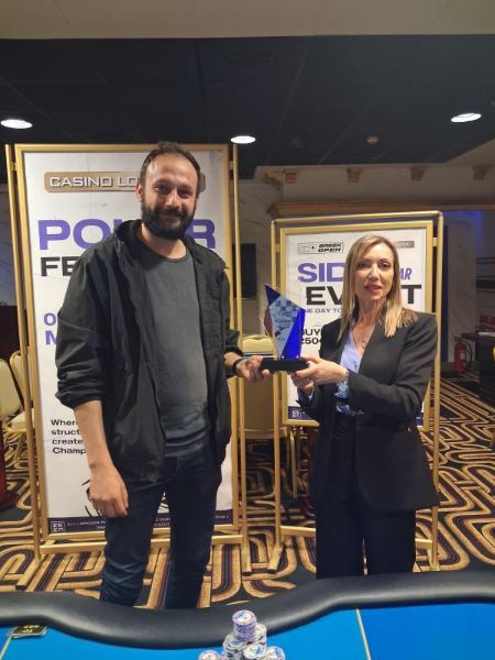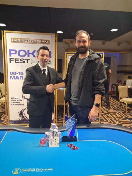 Νικητής του side event ο Αλέξανδρος Βλαχάκης! Μετά τους Παπαγεωργίου, Λαζαρίδη, Γιαννακόπουλο και τον μεγάλο νικητή του main event (Θεοδώρου) το βράδυ της Κυριακής έλαβε χώρα και η πέμπτη στέψη! Το €250 side event συγκέντρωσε ένα field 86 συμμετοχών με πολλά γνωστά ονόματα του ελληνικού community να δίνουν το “παρών”. Ο αποκλεισμός του Ποζιόπουλου έφερε ένα heads-up όπου το chip lead άλλαξε αρκετές φορές, με τον Μπαρμπαθανάση να διπλαδιάζει αρχικά με εννιάρια vs A7 και στο επόμενο hand να γυρνάνε οι μάρκες πίσω με AK vs QQ του Βλαχάκη. Το φινάλε δόθηκε λίγο μετά τις 02:00 με τον Βλαχάκη να κερδίζει το τελευταίο event του Loutraki Greek Open για 5.830 ευρώ! Η απονομή δια χειρός Γιώργου Γκαβού έριξε την αυλαία σε μια σπουδαία διοργάνωση και όλοι τους ετοιμάζονται για τα μέσα Μαΐου όπου προγραμματίζεται το επόμενο φεστιβάλ! Τα τελικά αποτελέσματα 1: Αλέξανδρος Βλαχάκης – €5.830 2: Δημήτρης Μπαρμπαθανάσης – €3.935 3: Θεοφάνης Ποζιόπουλος – €2.743 4: Mark McKenzie – €1.740 5: Rudolf Fuong – €1.296 6: Γιώργος Παπακωνσταντίνου – €983 7: Κώστας Τζίνης – €775 8: Νίκος Μπελιβάνης – €624 9: White Ivey – €529