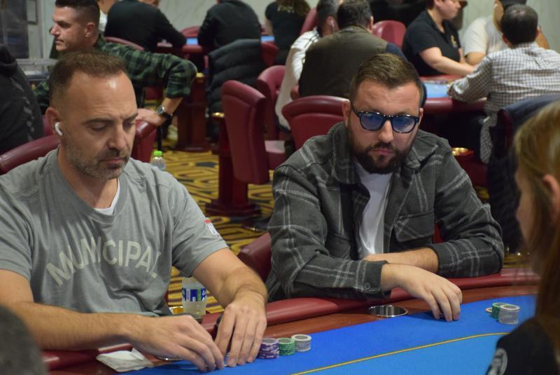 Level 3, blinds 200/500, ante 500 (88 entries / 81 players IN) H φωνή του Jake ακούστηκε από τις... κυλιόμενες σκάλες, πήρε θέση κι αυτός στο ακριανό τραπέζι του main event. Στη φωτογραφία Γιώργος Γκαβός και Μιχάλης Δόσχωρης που είναι... 24 ώρες το 24ωρο στο πόδι για την ομαλή διεξαγωγή του φεστιβάλ. Θυμίζουμε αύριο στις 14:00 η Day 2 του €550 main event και στις 18:00 το διήμερο €350 mystery bounty.