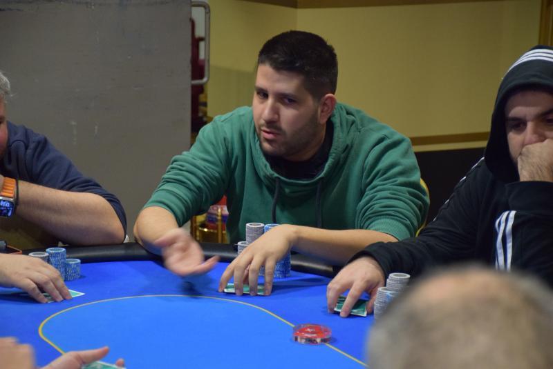 pokerland Δημοσίευση %s στις %s Αναφορά Δημοσίευση %s στις %s Level 9, blinds 1.000/2.000, ante 2.000 (152 entries / 76 players IN) Κοσμοπλημμύρα στο καζίνο με μια κλήρωση να έχει φέρει την μισή Πελοπόννησο και τους λαχνούς να πέφτουν βροχή. Κατάμεστο αυτή τη στιγμή και το poker room με τέσσερα cash tables να τρέχουν παράλληλα με το τουρνουά. Στη φωτο ο Παναγιώτης Δαμηλάτης που συνεχίζει στο €550 main event.